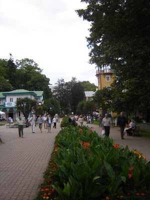 Myślenie historyczne z upływem następnych minut spędzonych już w autokarze zmieniało się bardziej na to z dziedzin kulinarnych. Po powrocie nie było czasu na prysznic, gdyż obiad już czekał. Po posiłku, cały Iwonicz kusił dancingami, które istotnie bardzo zachęcały do zabawy. Ja postanowiłem się wyłamać i poznać lepiej to uzdrowisko. Skorzystałem z jednej z licznych ścieżek spacerowych....