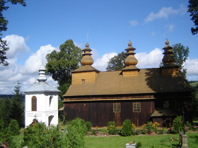 Niezbyt syte aczkolwiek dobre śniadanko niechybnie oznaczało, iż za kilkanaście minut ruszę w kolejny etap mej podróży po Beskidzie Niskim. Ciekawie zrobiło się już w autokarze, którym dojechaliśmy do Wisłoka Wielkiego. W międzyczasie minęliśmy Rymanów-Zdrój, do którego zawitaliśmy następnego dnia, a także miejscowość o bardzo rozległej historii, której nazwa to Królik Polski. Zaciekawić może już sama nazwa. Królik Polski był wyjątkową osadą, gdyż niegdyś pośród tej łemkowskiej krainy mieszkali tutaj sami Polacy. Niestety nie mogliśmy się w niej zatrzymać, by obejrzeć zabytki, jakie się w niej znajdują. Tak więc przegapiliśmy drewniany kościół parafialny z XVIII wieku, pozostałości fortyfikacji z XVII wieku znajdujące się w okolicach kościoła, pomnik ku czci zamordowanych przez Niemców mieszkańców wsi oraz kilka kapliczek.