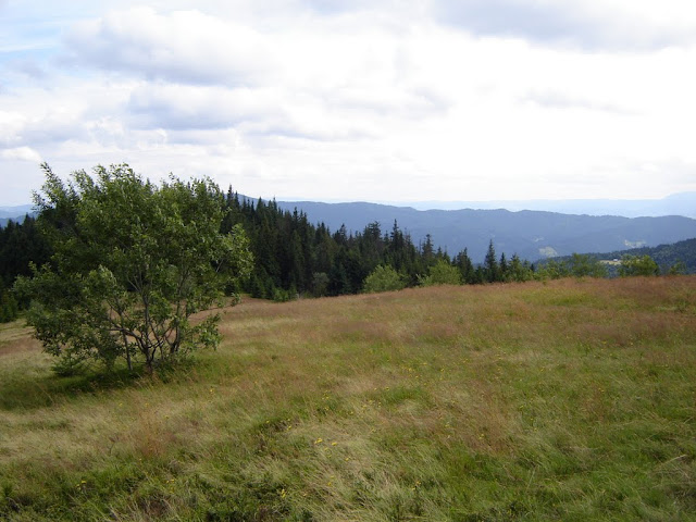 Całą polanę przemierza się czas jakiś - im dłużej tym lepiej, bowiem wtedy dopiero mogłem oddychać pełną piersią i nawet ciężki plecak mi w tym nie przeszkadzał. Właśnie dla takich miejsc i widoków tysiące turystów przemierza Gorce. Co więcej, szlak jest tu dobrze oznaczony, bowiem wśród głównej ścieżki, powbijano w ziemię kilka pali. Z południowego krańca polany na główny szczyt, który przez wielu nazywany jest tak samo jak polana pozostaje zaledwie kilkanaście minut. Po co jednak się spieszyć jeśli wokół rozciągają tak fantastyczne pejzaże?