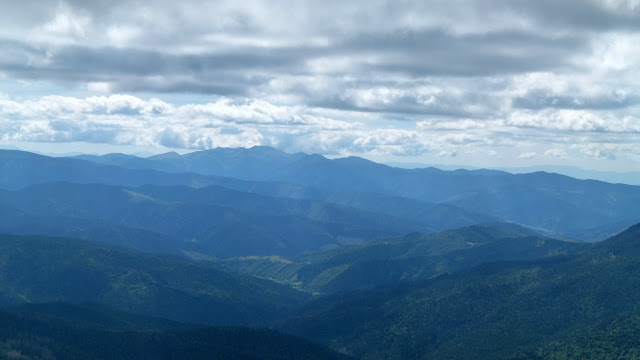 Towarzystwo mieliśmy zacne. Na lewo Gorgany, niższe partie Czarnohory oraz Beskidy Pokucko-Bukowińskie. Na prawo natomiast między innymi Góry Marmaroskie przez które przebiega granica ukraińsko-rumuńska. A jeśli jesteśmy w temacie granic to warto wspomnieć, iż poruszaliśmy się aktualnie międzywojenną granicą między Polską, a Czechosłowacją. Śladem po niej są liczne słupki graniczne.
