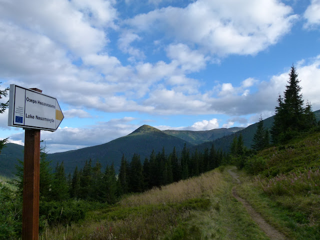 Z Jeziorka Niesamowitego do Zaroślaka mamy siedem kilometrów spokojnego i nietrudnego zejścia. Przejście tego odcinka zajęło nam około dwóch godzin. W tym czasie odcinki leśne mieszają się z tymi widokowymi. Przed nami rozpościerała się zatem dolina rzeki Prut, nad którą unosiły się okoliczne góry. Za nami natomiast rósł potężny grzbiet Czarnohory. To co zwróciło moją uwagę to tabliczki z opisem i kierunkiem przebiegu szlaku powstałe z funduszy unijnych. Po drodze trafiła się nawet kilkumetrowa wieża widokowa.