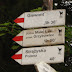 | z głównej szosy, szlak żółty skręca w wąską uliczkę między domostwami |